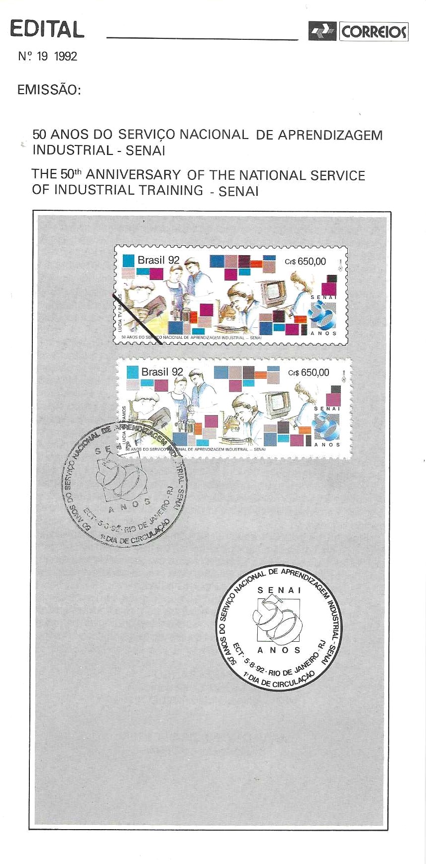 1º dia de Circulação – CPD: 05.08.1992.