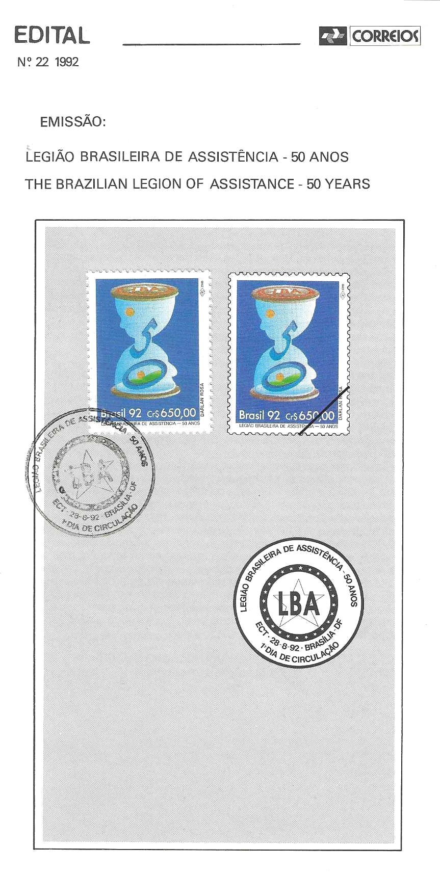 1º dia de Circulação – CPD: 28.08.1992.