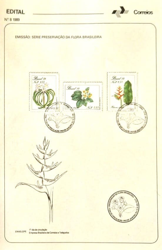 Home Filatelia Selos Países Temas Brasil Flores Br-Edital, 8/1989. (EPD). Emissão: Série: Preservação da Flora (Goetea Pavonia, Rabo-de-Galo, Bannaneirinha). Carimbo do 1º dia, Rio de Janeiro/RJ. C/ 03 (três) selos originais, C-1631/33, (RHM) (Mint).