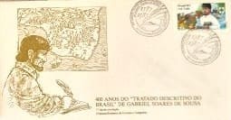 Br EPD (Envelope de Primeiro Dia), 1987 (Lançado em 1988), C-1575 RHM, (Mint). 400 Anos do Tratado Descritivo do Brasil de Gabriel Soares de Souza, c/selo original colado. Rio de Janeiro/RJ (ECT). Número: 55850.
