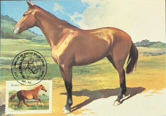 Br-Máximo, 1985, MA0107, C-1446, EPD, (Mint). Cavalos de raças brasileiras (Mangalarga Machador). CBC, Rio de Janeiro/RJ. Verso: Postal ECT, número 028972.