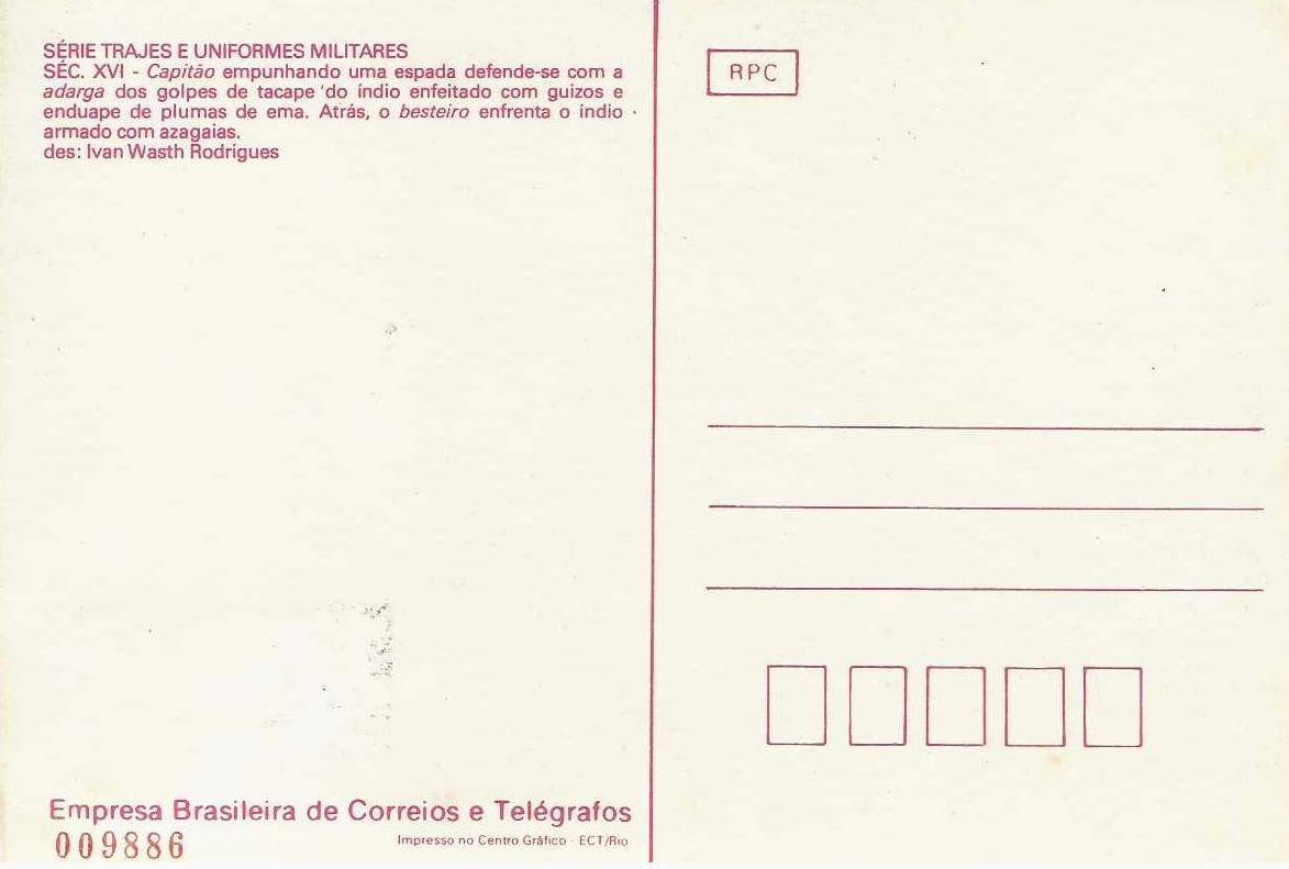 Br-Máximo, 1985, MA0122, C-1479, EPD, (Mint). Trajes e Uniformes Militares (Uniforme do século XVII). CBC Brasília/DF. Verso: Postal ECT, número 009886.