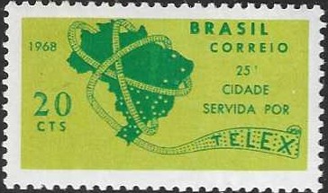 Home Filatelia Selos Países Temas Brasil Comunicações Br-Selo, 1968, C-607-RHM, (Mint), 25ª Cidade Servida por TELEX, Curitiba/PR.
