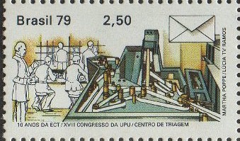 Home Filatelia Selos Países Temas Brasil Correios do Brasil Br-Selo, 1979, C-1082-RHM, (Mint). 10 Anos da ECT – XVIII Congresso da UPU, Centro de Triagem.