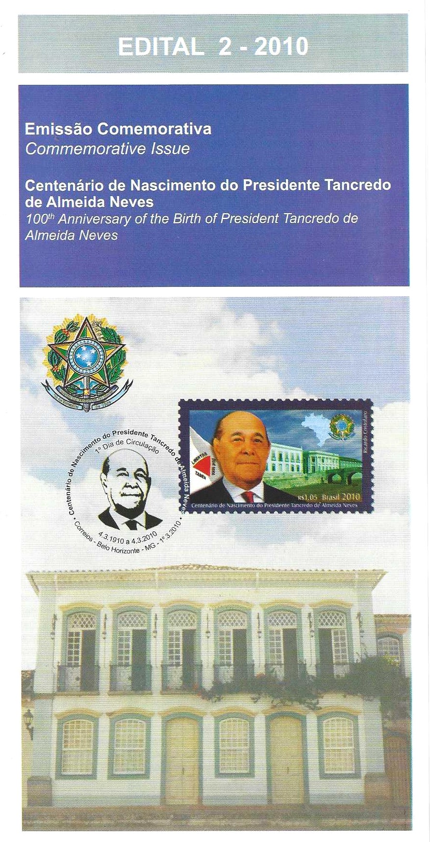 Br-Edital, 26/2010 (Mint). Emissão Especial: Série Relações Diplomáticas: Brasil - Zâmbia. Local de Lançamento: Brasília/DF.