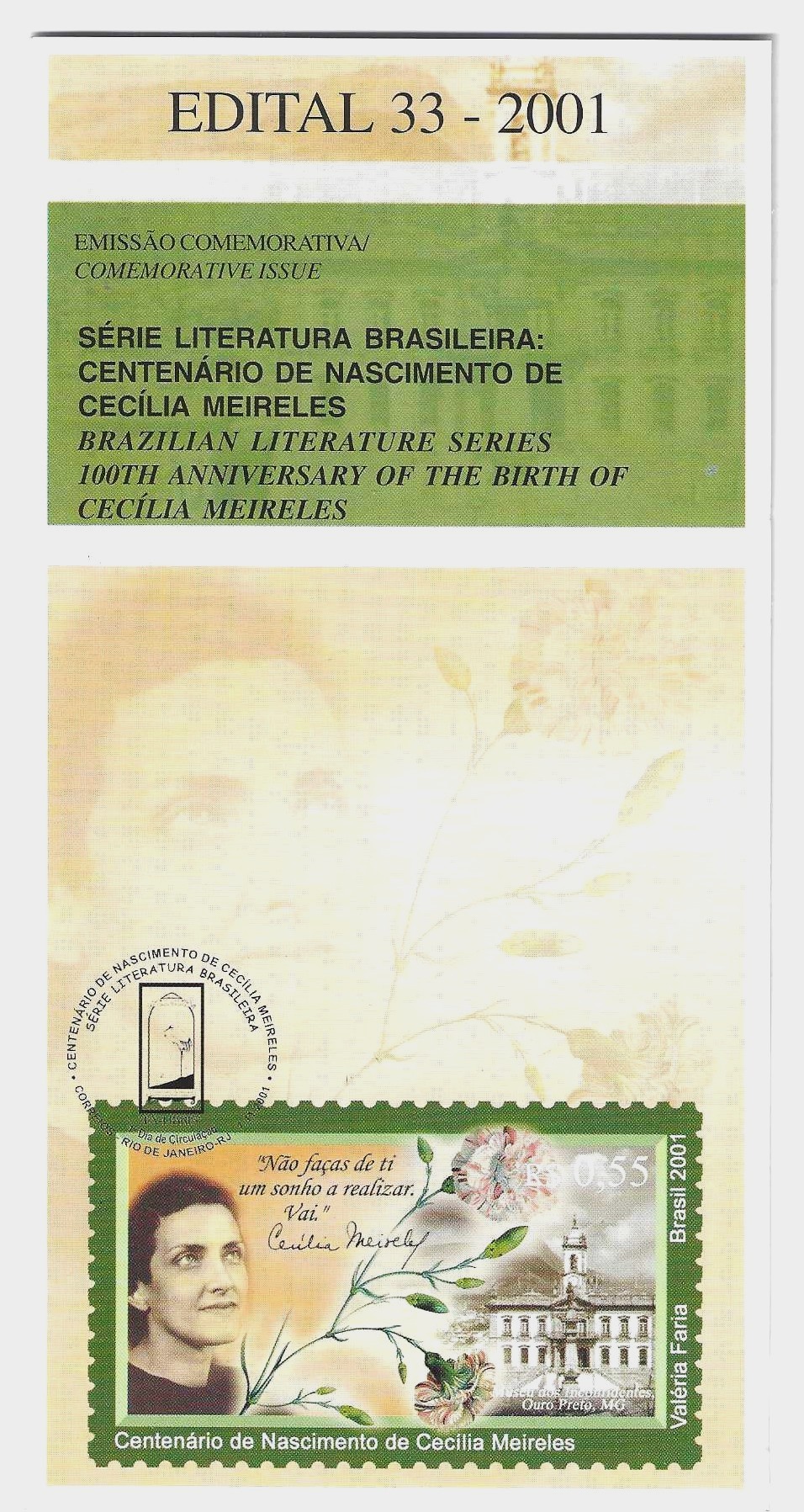 Br-Edital, 41/2001 (Mint). Emissão comemorativa: Dia Internacional do Portador de Deficiência. Local de lançamento ECT: Brasília/DF.