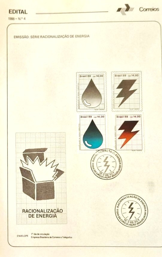 Br-Edital, 4/1988. (EPD). Emissão: Racionalização de Energia. Carimbo do 1º dia, Brasília/DF. Selos 4 (quatro) C-1579/80, (RHM) (Mint).