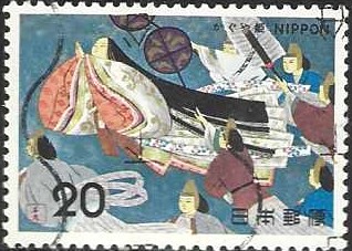 JAP Selo, 1974, (Japão/Ásia), (Mint). Japanese Folktales - Kaguya Hime. Kaguya Hime and Escorts (Folklore 4th Issue).